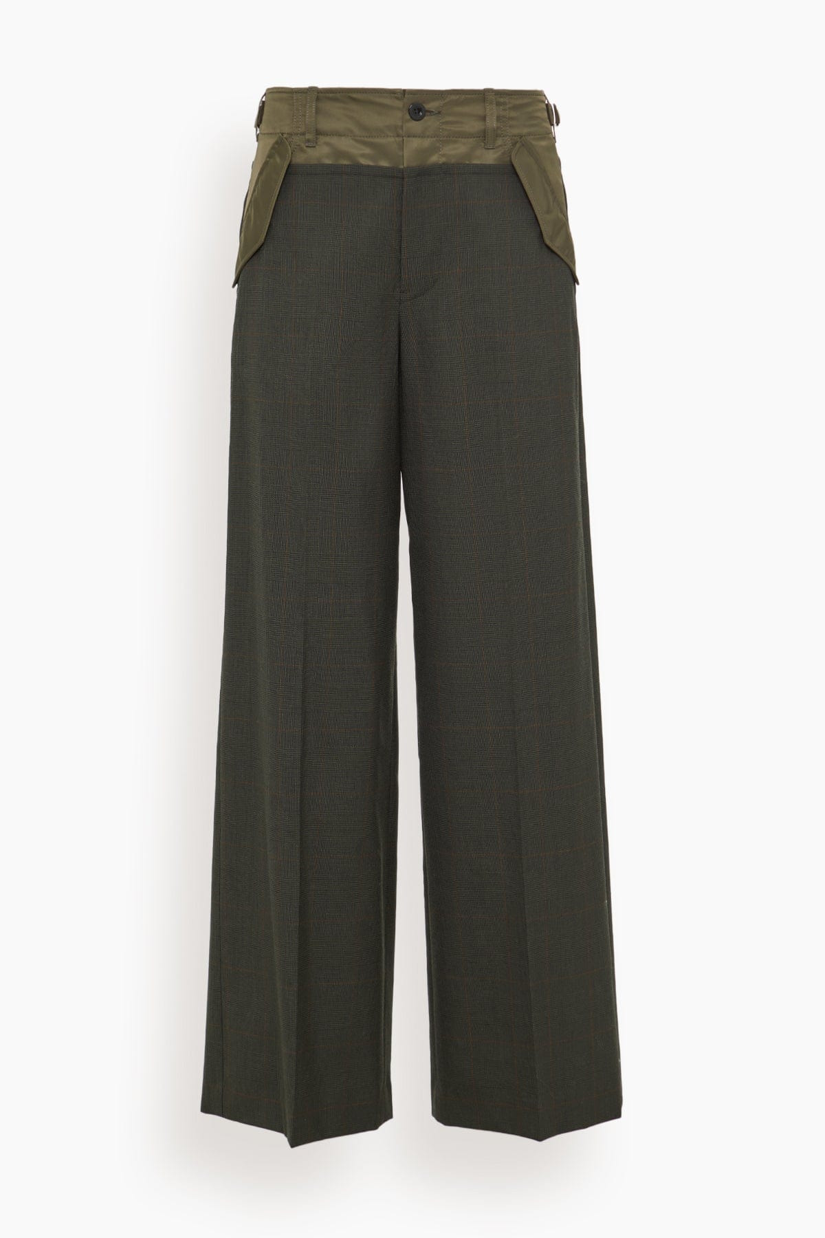 The Sacai Glen Check Pants features the menswear inspiration you love from this designer. These trousers are crafted in a luxurious wool glen check with a straight leg and contrasting nylon waistband. Wear yours with a blouse and loafers. FIT DESCRIPTION MODEL MEASUREMENTS - Fits true to size, take your normal size - Straight leg - High rise - Tailored silhouette - Front crease - Contrasting nylon waistband - 100% Wool - Rayna is wearing a size 1/ XS - Bust: 34” - Waist: 24” - Hips: 32” - Height: 5’8.5”
