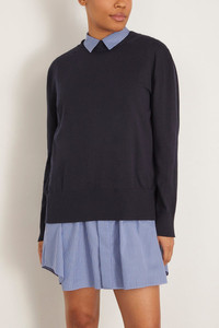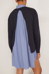 The Sacai Poplin Cotton Knit Dress features their signature layered look. This dress has a striped cotton poplin under-layer with a relaxed knit overlay. Wear yours with boots and a crossbody bag. FIT DESCRIPTION MODEL MEASUREMENTS - Fits true to size, take your normal size - Knee length dress - Mixed material - Cotton poplin underlay - Knit overlay - Relaxed fit - 100% Cotton - Celeste is wearing a size 2/ S - Stylist note: Model sized up for extra length - Bust: 35" - Waist: 25.5" - Hips: 34" - Height: 5’10”