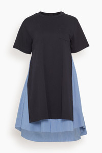Poplin x Cotton Jersey Dress in Navy/Blue Stripe