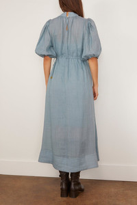 Anise Solid Puff Sleeve Midi Dress in Blue