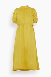 Anise Solid Puff Sleeve Midi Dress in Chartreuse