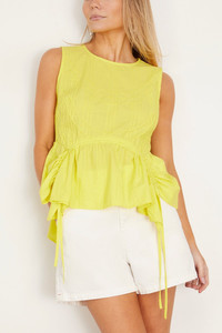 The Camden tank top features an asymmetrical hem with adjustable drawstring cords and pintuck detailing throughout. FIT DESCRIPTION MODEL MEASUREMENTS - Fits true to size, take your normal size - 100% cotton - invisible back zipper - designed for a relaxed fit - Charley is wearing a size 2 - Bust: 33” - Waist: 25” - Hips: 34” - Height: 5’8”