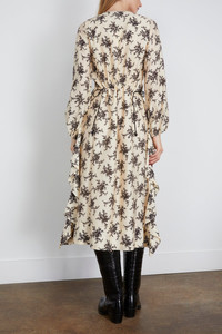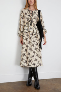 Joan tie-detailed ruffled floral-print voile midi dress Cream
