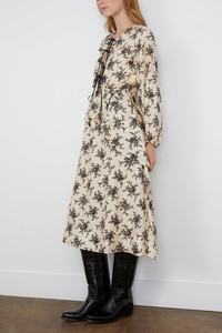Joan Print Tie Front Midi Dress in Cream