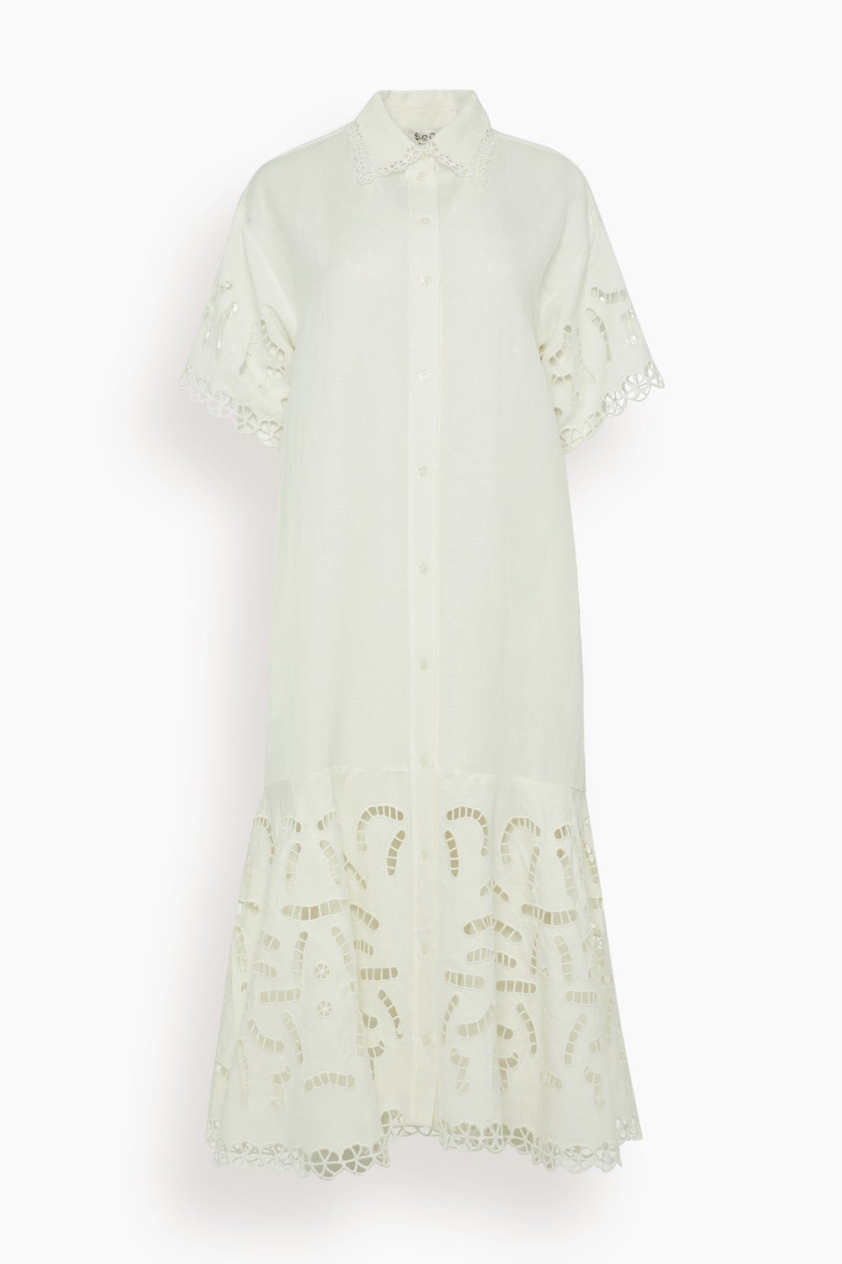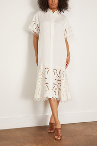 The SEA Marja Embroidery Shirt Dress is a must-have addition to your spring wardrobe. This shirtdress features a straight silhouette with beautiful eyelet detailing. Wear yours with sandals and a tote bag. FIT DESCRIPTION MODEL MEASUREMENTS - Fits true to size, take your normal size - Shirtdress - Midi length - Straight silhouette - Eyelet - 55% linen. 45% viscose - Celeste is wearing a size XS - Bust: 35" - Waist: 25.5" - Hips: 34" - Height: 5’10”