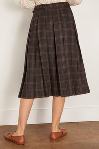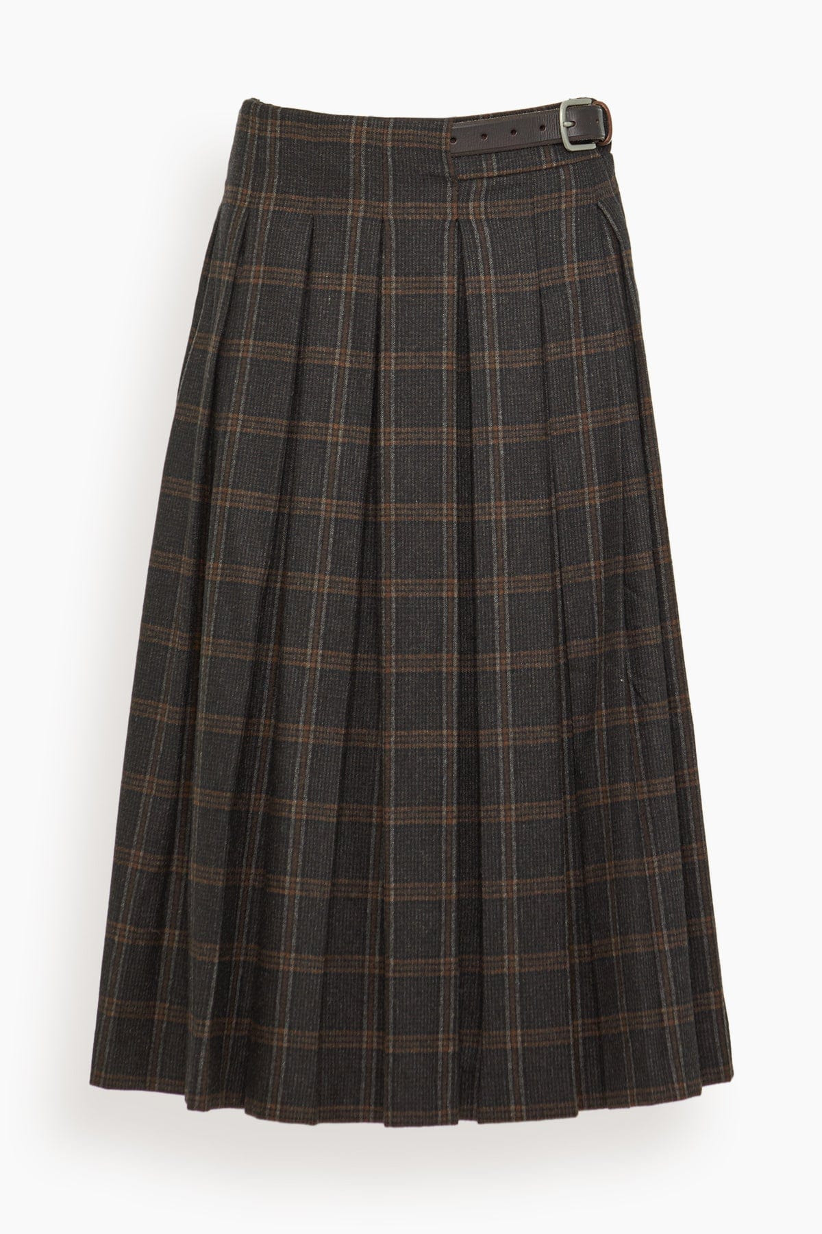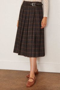 Monroe Wool Plaid Belted Pleat Skirt in Multi