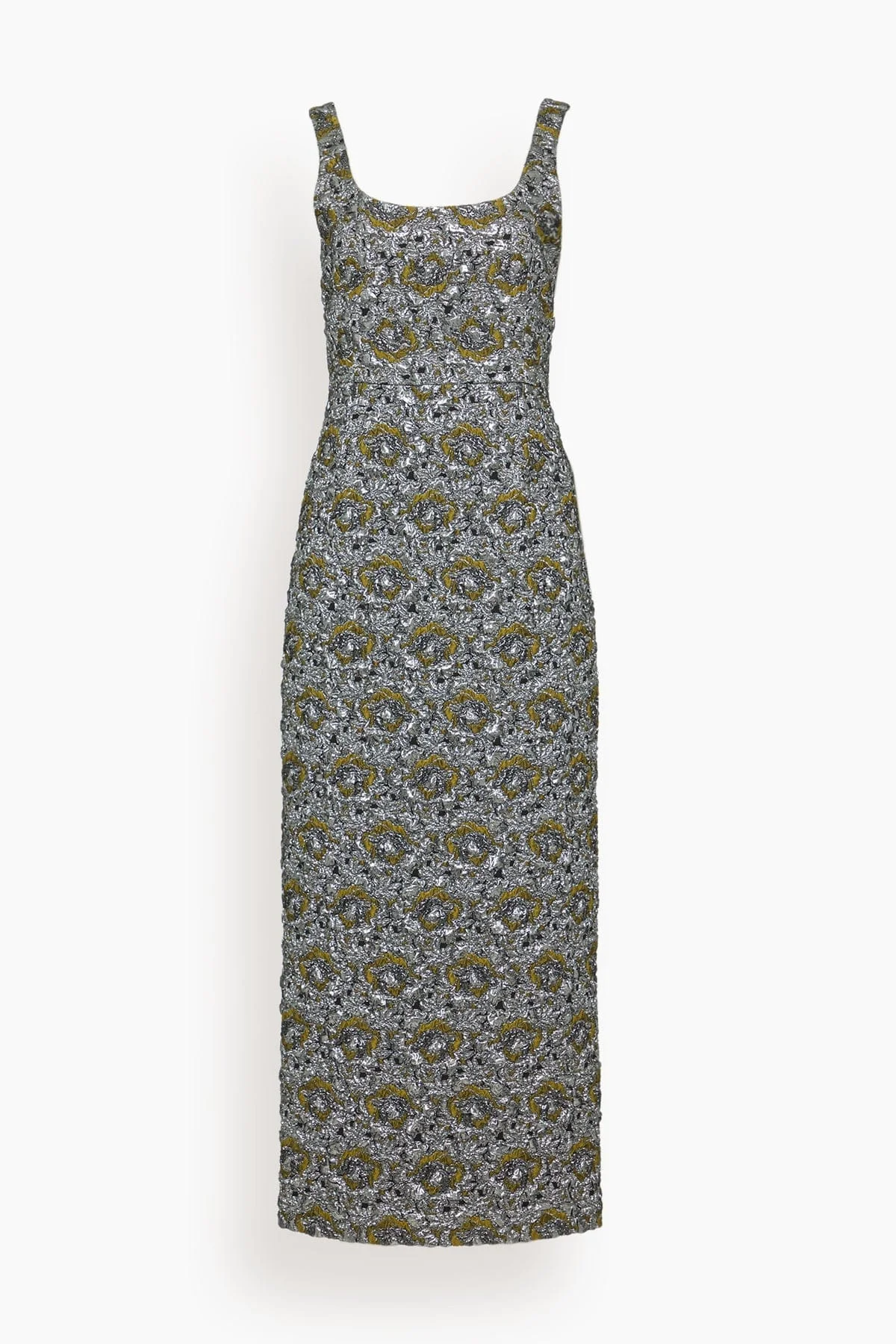 The Simkhai Ravenna Midi Dress is a beautiful piece from their Resort 26 Collection. You'll love the metallic, jacquard material of this column silhouette midi dress. Wear yours with heels and a clutch. - Midi length - Column silhouette - Scoop neckline - Jacquard material - Concealed zipper - 95% Polyester 5% Elastane