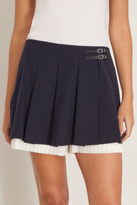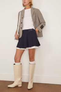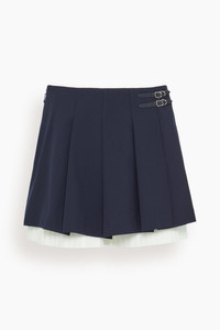 The Simkhai Suzie Pleated Short is both trendy and practical. You'll love the hidden pleated shorts under this mini skirt. Wear yours with a sweater and boots. FIT DESCRIPTION MODEL MEASUREMENTS - Fits true to size, take your normal size - Mini skort - Pleated shorts - High rise - Side belt - Polyester - Harriet is wearing a size 2 - Bust: 32" - Waist: 24" - Hips: 30.5" - Height: 5’8.5”