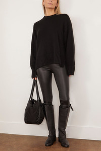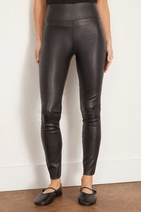 Your favorite leather leggings are back. The SPRWMN Ankle Legging in Black are crafted in their signature stretch leather with a slim leg and flattering high rise. Wear yours with a sweater and boots this season. FIT DESCRIPTION MODEL MEASUREMENTS - Fits true to size, take your normal size - Leather leggings - High rise - Slim leg - Stretch leather - 100% Leather - Kyleigh is wearing a size XS - Bust: 32" - Waist: 25" - Hips: 33.5" - Height: 5’9”
