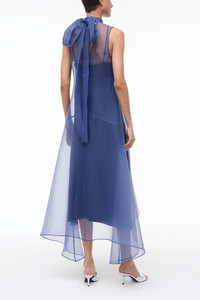 The Staud Auden Dress is a beautiful addition to your wardrobe. This midi dress features a sheer overlay with a flattering a-line silhouette. Wear yours with heels and a clutch. - Midi length - A-line silhouette - Sheer overlay - Mock neckline - Tie back closure - High-low hemline - 100% Polyester, Slip: 100% Polyester
