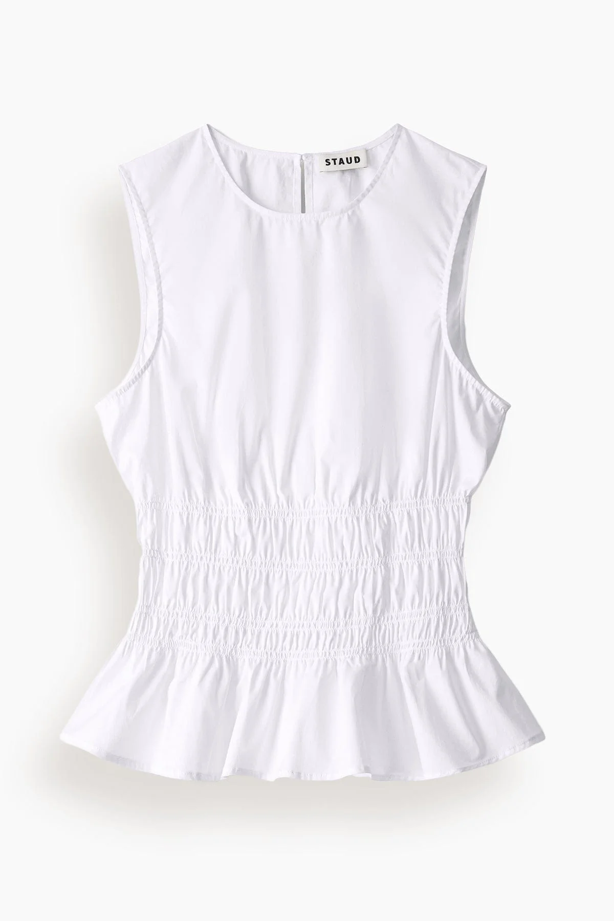 The Staud Culver Top is great for everyday wear. You'll love the flattering smocked waistband of this sleeveless top with a peplum hemline. Wear yours with jeans and flats. - Sleeveless top - Smocked waistband - Peplum hemline - 98% Cotton, 2% Spandex
