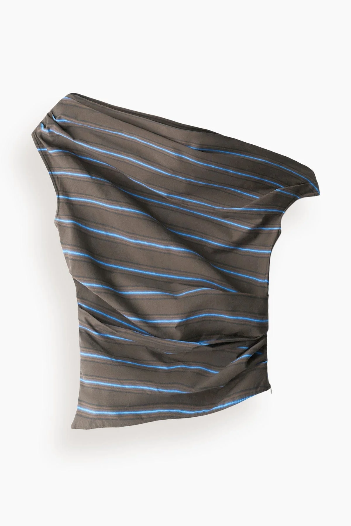 The Staud Phare Top is a must-have piece from their Spring 26 Collection. This top features an off the shoulder design with flattering ruching and draping in striped cotton poplin. Wear yours with jeans and flats. - Off the shoulder top - Ruching and draping - Slim silhouette - 98% Cotton, 2% Spandex