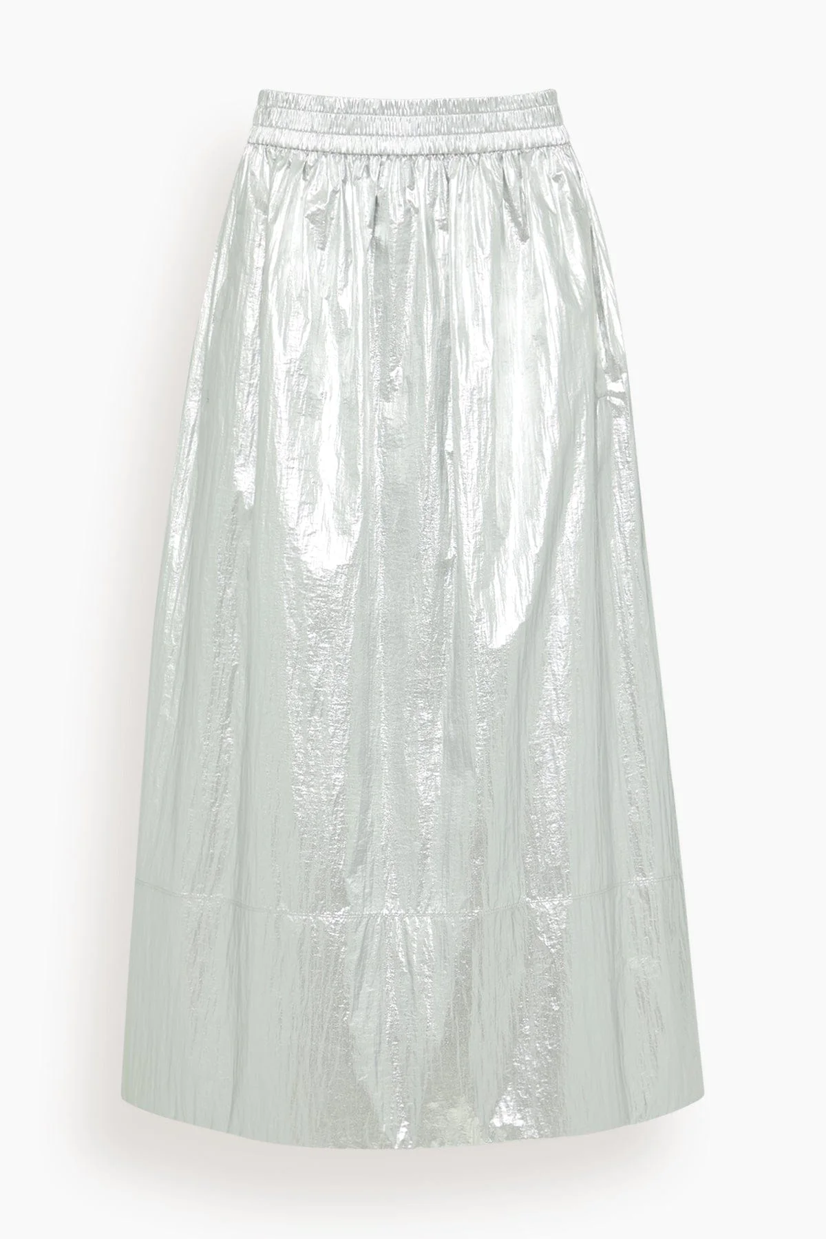 The Tibi Metallic Nylon Pull On Full Skirt is a playful piece from their Resort 26 Collection. This midi skirt is crafted in a metallic nylon with a relaxed silhouette that can easily be worn day or night. We love it paired with a sweater and flats. FIT DESCRIPTION MODEL MEASUREMENTS - Fits true to size, take your normal size - Midi length - Relaxed fit - Elastic waistband - Metallic material - 100% Polyamide - Gracie is wearing a size XS - Bust: 34" - Waist: 26" - Hips: 38" - Height: 5’9”