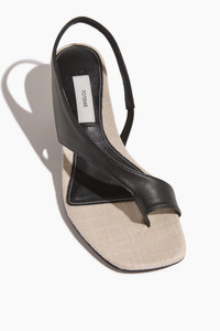 The Toteme Leather Heeled Thong Sandals features the minimalistic styling you love from this designer. These heeled thong sandals have a sculptural strap and canvas trim. FIT DETAILS - Heeled sandals - Thong sandal - 40mm heel - Canvas trim - 100% lamb leather