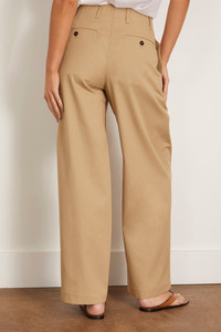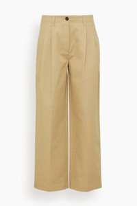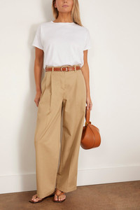 The Toteme Relaxed Chino Trousers are a classic with a twist. These trousers feature a wide leg with front pleats and a relaxed fit for ease. Wear yours with a t-shirt and sandals. FIT DETAILS - Wide leg - Relaxed fit - High rise - Front pleats - 100% cotton organic