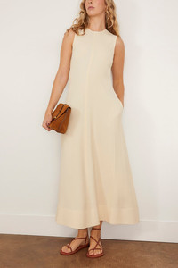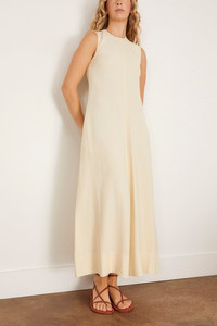 The Toteme Woven Stripe Dress features the minimalistic look you love from this designer. This midi dress features a flowy silhouette with a raised stripe material. Wear yours with sandals and a tote bag. FIT DETAILS - Midi length - Relaxed fit - Flowing silhouette - Raised stripes - Concealed zipper - 96% viscose, 4% linen