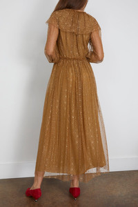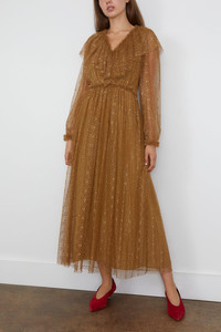 Helena Ruffle Neckline Long Sleeve Dress in Burnish