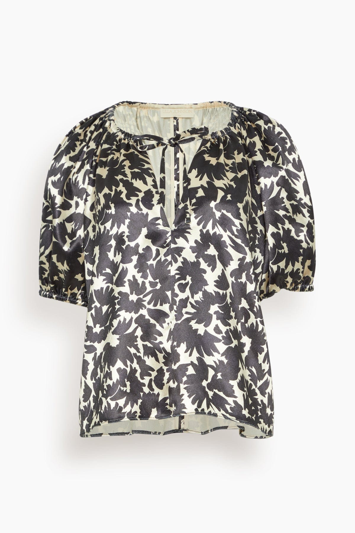The Ulla Johnson Neema Top is crafted in a beautiful printed satin. You'll love the subtle puffed sleeves of this blouse with a split neckline. Wear your with jeans and flats. FIT DESCRIPTION MODEL MEASUREMENTS - Fits true to size, take your normal size - Short sleeve top - Straight silhouette - Puffed sleeves - Split neckline - 100% Polyester - Harriet is wearing a size 2 - Bust: 32" - Waist: 24" - Hips: 30.5" - Height: 5’8.5”