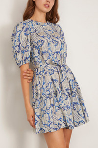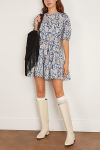 The Ulla Johnson Rosalie Short Sleeve Mini Dress is crafted in their must-have botanical inspired print. You'll love the playful puffed sleeves and full skirt of this mini dress. Wear yours with flats and a crossbody bag. FIT DESCRIPTION MODEL MEASUREMENTS - Fits true to size, take your normal size - Mini length - Full skirt - Self tie belt - Puffed sleeves - Gathered hemline - 66% Cotton, 34% Viscose - Rayna is wearing a size 2 - Bust: 34” - Waist: 24” - Hips: 32” - Height: 5’8.5”