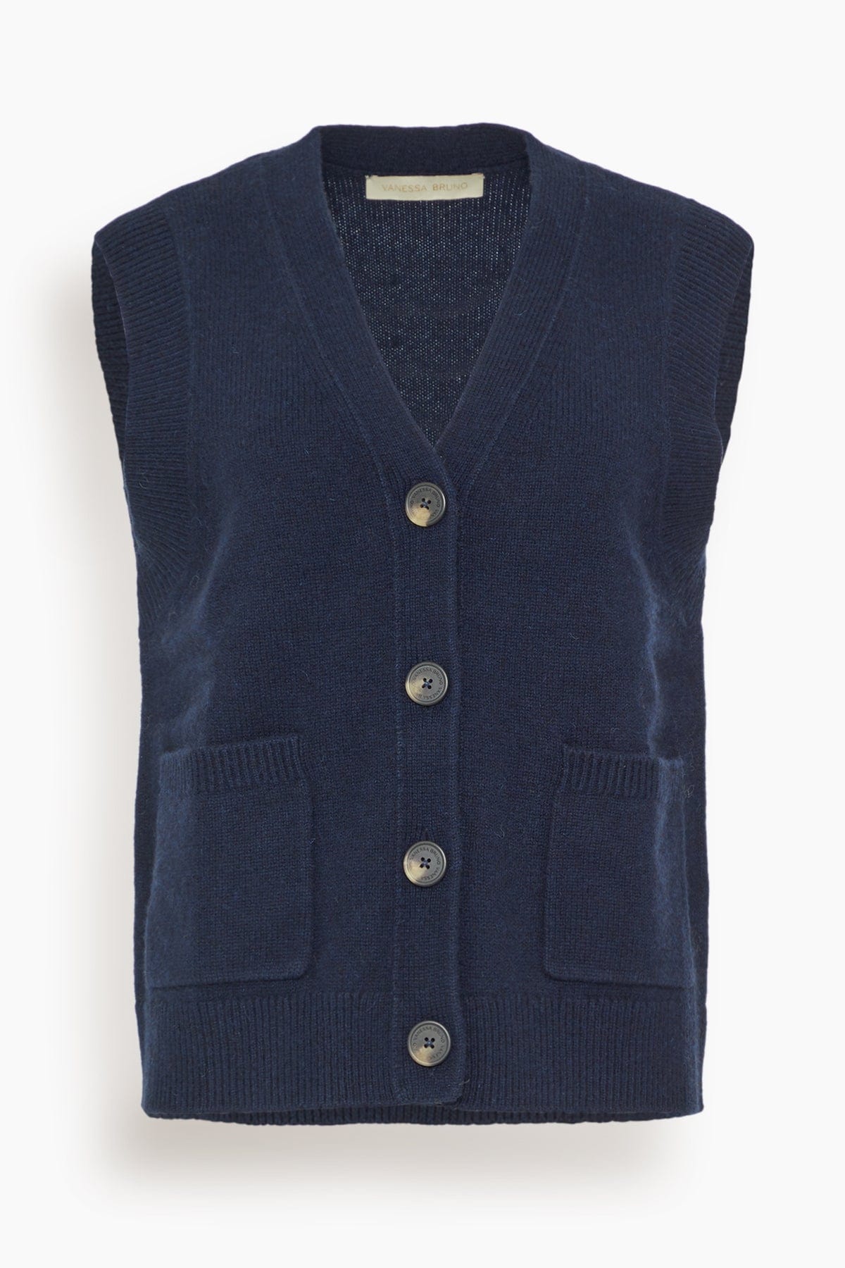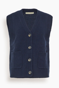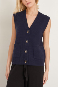 The Vanessa Bruno Dashley Top is a great transitional piece to add to your wardrobe. This sleeveless vest features a button front with a relaxed fit. Wear yours with trousers and loafers. FIT DESCRIPTION MODEL MEASUREMENTS - Fits true to size, take your normal size - Sweater vest - Sleeveless - Button front - V-neckline - Front pockets - 50% Wool 50% Yak - Harriet is wearing a size XS - Bust: 32" - Waist: 24" - Hips: 30.5" - Height: 5’8.5”