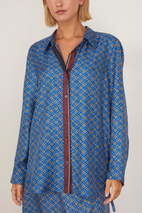 The Vanessa Bruno Dorothee Blouse is crafted in their must-have geometric print. You'll love the relaxed fit of this silk blend blouse. Wear yours with the matching pants and flats. - Button down shirt - Relaxed fit - Shirt collar - 60% viscose, 40% silk