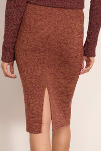 The Vanessa Bruno Fausta Skirt is a perfect addition to your winter wardrobe. This skirt is crafted in a ribbed knit with a slim silhouette. Wear yours with the matching sweater and boots. FIT DESCRIPTION MODEL MEASUREMENTS - Fits true to size, take your normal size - Sweater skirt - High rise - Slim silhouette - Ribbed knit - Back vent - 50% Cotton, 50% Wool