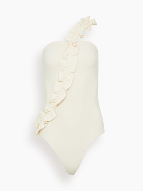 Niya Deep V Tie Waist One Piece Swimsuit in Black