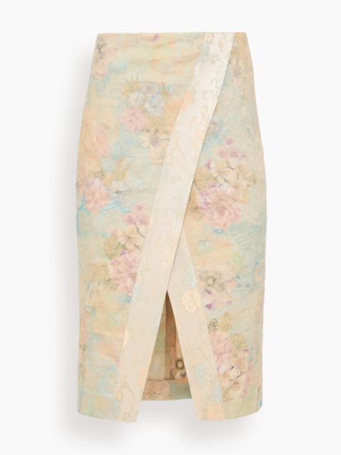 Yolanda Brocade Off The Shoulder Gown in Gold Wavy Stripe