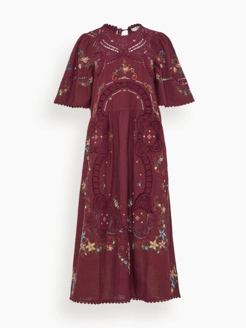 Edwina Embroidered Short Sleeve Dress in Burgundy