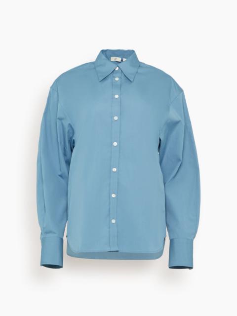 Poplin x Cotton Jersey Dress in Navy/Blue Stripe