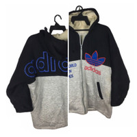 VINTAGE ADIDAS BIG LOGO EMBROIDERED ZIPPER HOODIE SWAG