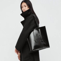 Authentic 100% UNIQLO’s Popular collaboration with legendary designer Jil Sander continues to define the global modern uniform, giving it meaning and purpose for today. - The particular cut contrasts sharp and curved lines. - Navy coloured edges and lining complement the black surface. - Embossed +J logo FABRIC DETAILS Shell: Polyurethane: Acrylic Resin Coated Leather/ Handle: Genuine Leather/ Lining: 100% Cotton SIZE Height: 34cm, Width (Bottom): 30cm, Length: 12cm, Handle Length: 52cm