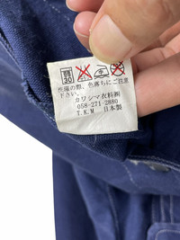 ▪️ITEM DESCRIPTION PLACE OF ORIGIN : JAPAN PIT TO PIT : 21.5 inches LENGTH : 29.5 inches MATERIAL : COTTON / DUCK CANVAS CONDITION : VERY GOOD *missing button on right back pocket *some wear and tear ▪️PAYMENT We accept payment with PAYPAL only. ▪️SHIPPING $100 & above : DHL Express Below $100 : DHL E-commerce [DHL Express : 4-6 days] [DHL E-commerce : 10-14 days] **DEPENDS on your postcode / region, Some place could delivered faster than estimation Takes 1 - 2 days for processing of the order. Tracking number will be provided with every shipped item. ▪️PLEASE LEAVE ME YOUR PHONE NUMBER AFTER PURHASING FOR DELIVERY METHOD.