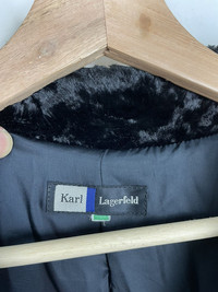 KARL LAGERFELD FAUX FUR TRIMMED TRENCH COAT CASHMERE