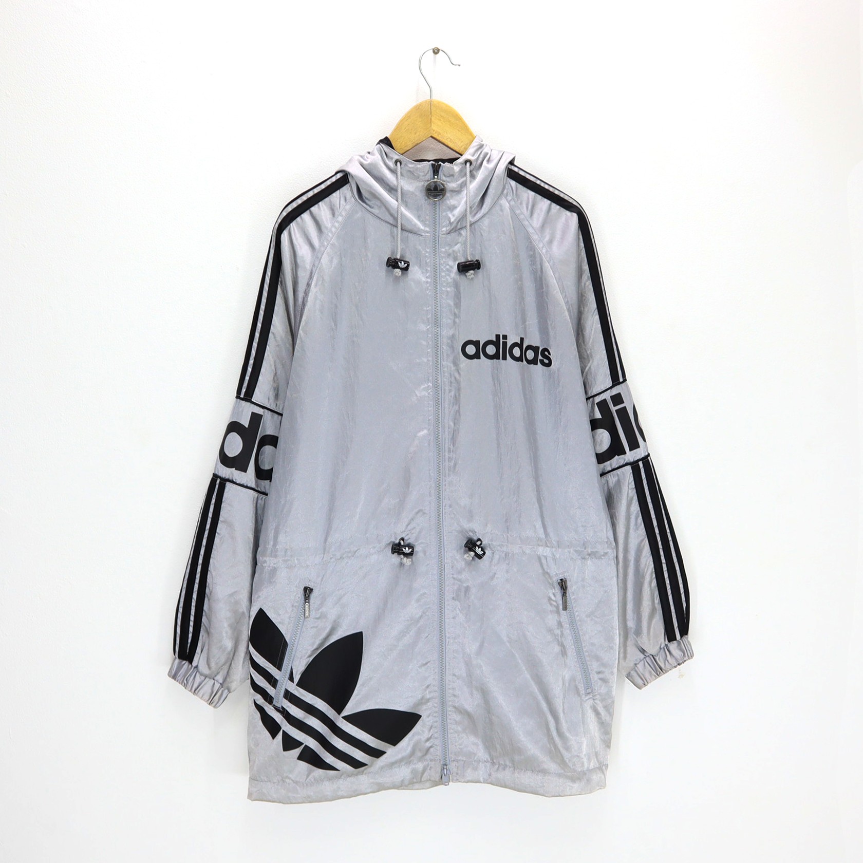 Vintage 90s ADIDAS Trefoil Big Logo Windbreaker Windstopper Hoodie Coat Jacket Made In Japan