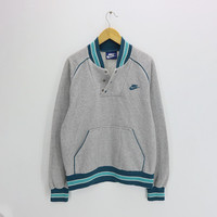 Vintage 80s NIKE Mini Logo Embroidered Half Zip Pullover Jumper Jacket Size Large