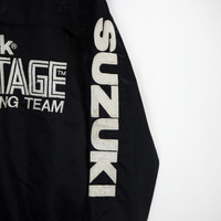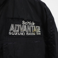 Vintage 80s 90s Satoshi Tsujimoto 1988 Schick Advantage RGV500 SUZUKI RACING TEAM Bomber Half-Zip Jacket Big Logo Spellout