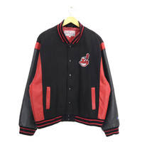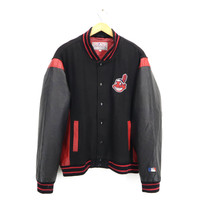 Vintage 80s Starter MLB Indians University Wool Blend Leather Sleeve Bomber Varsity Jacket Size Extra Large