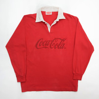 Vintage 90s COCA-COLA Rugby Shirt Long Sleeve Polo Shirt Pullover Jumper Big Logo Size Large
