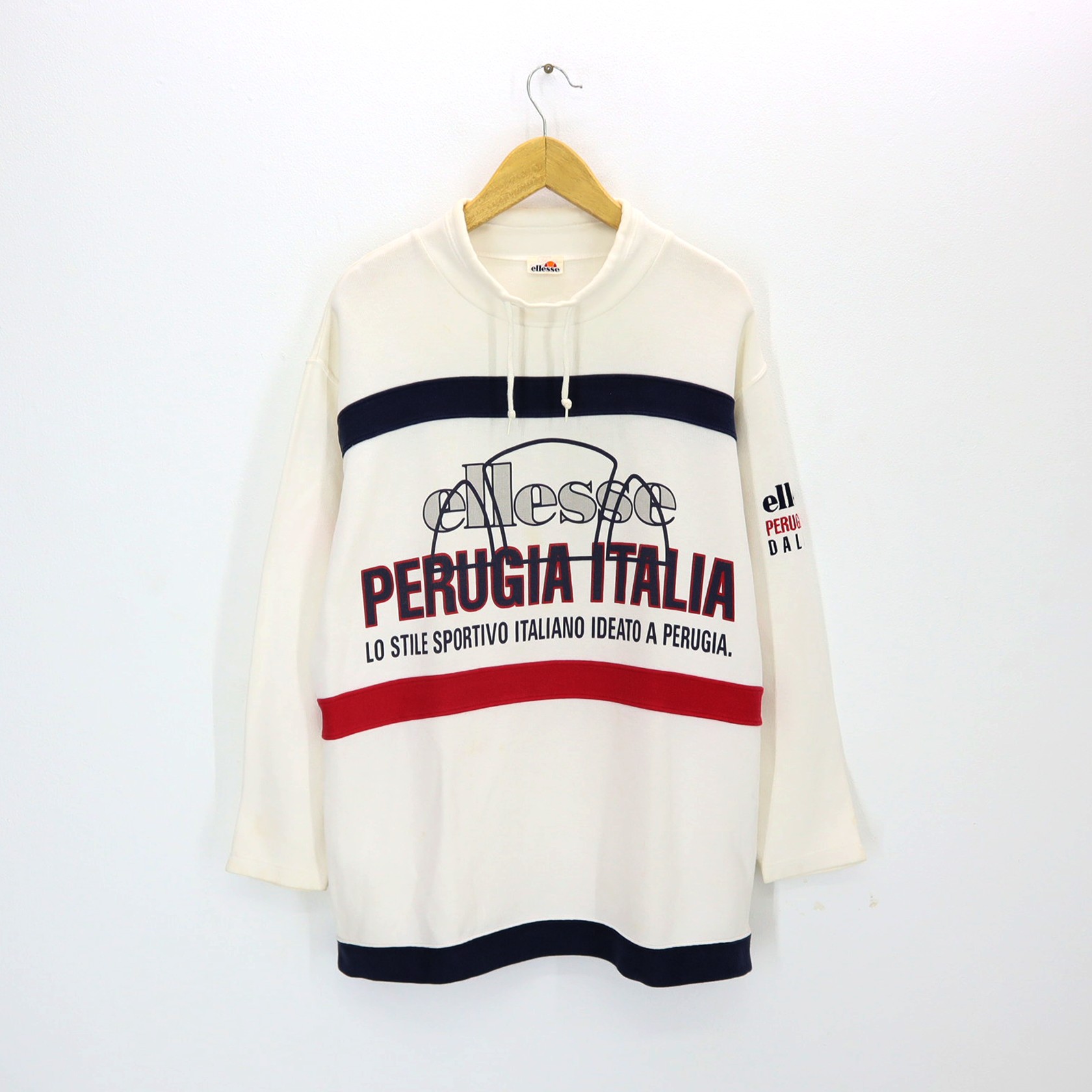 Vintage 90s ELLESSE PERUGIA ITALIA Big Logo Sweatshirt Pullover Jumper Size Medium