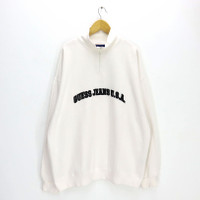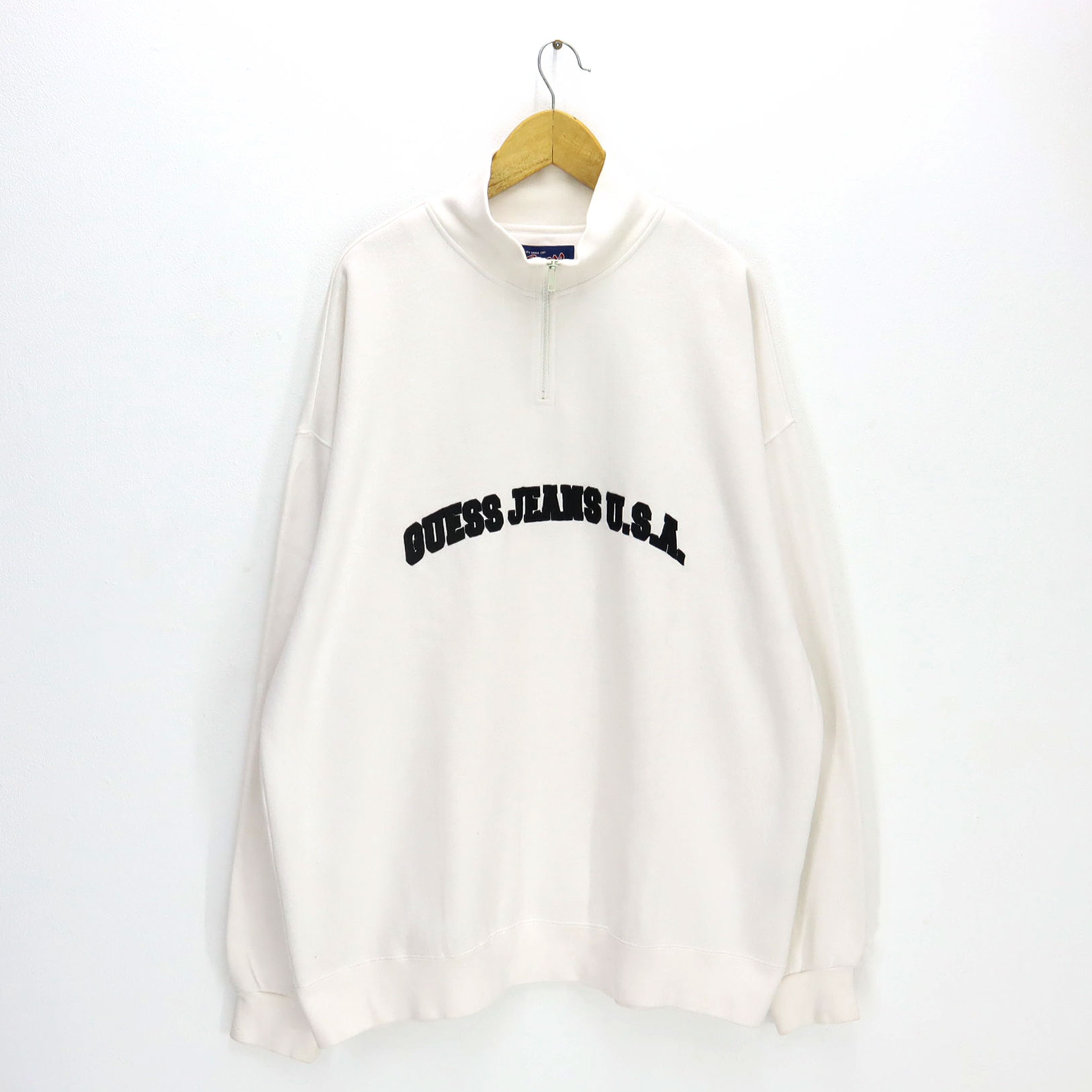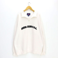Vintage 90s GUESS JEANS USA Big Logo Embroidered Half Zipper Pullover Jumper Made In Nothern Mariana Island (U.S.A) Size Medium