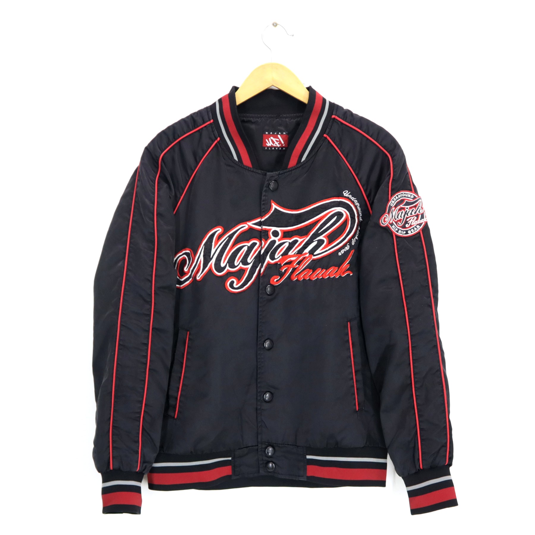 Vintage 90s MAJAH FLAVAH Hip Hop Gear Varsity Bomber Jacket Majah Flavah Big Logo Embroidered Size Would Fit M