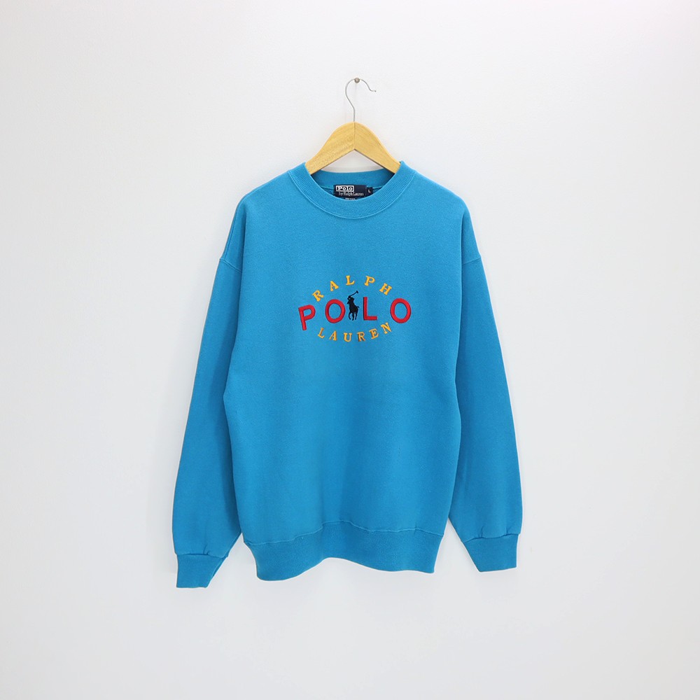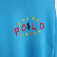 Vintage 90s POLO By RALPH LAUREN Big Logo Embroidered Blue Pullover Jumper Sweatshirt Crewneck Made In U.S.A