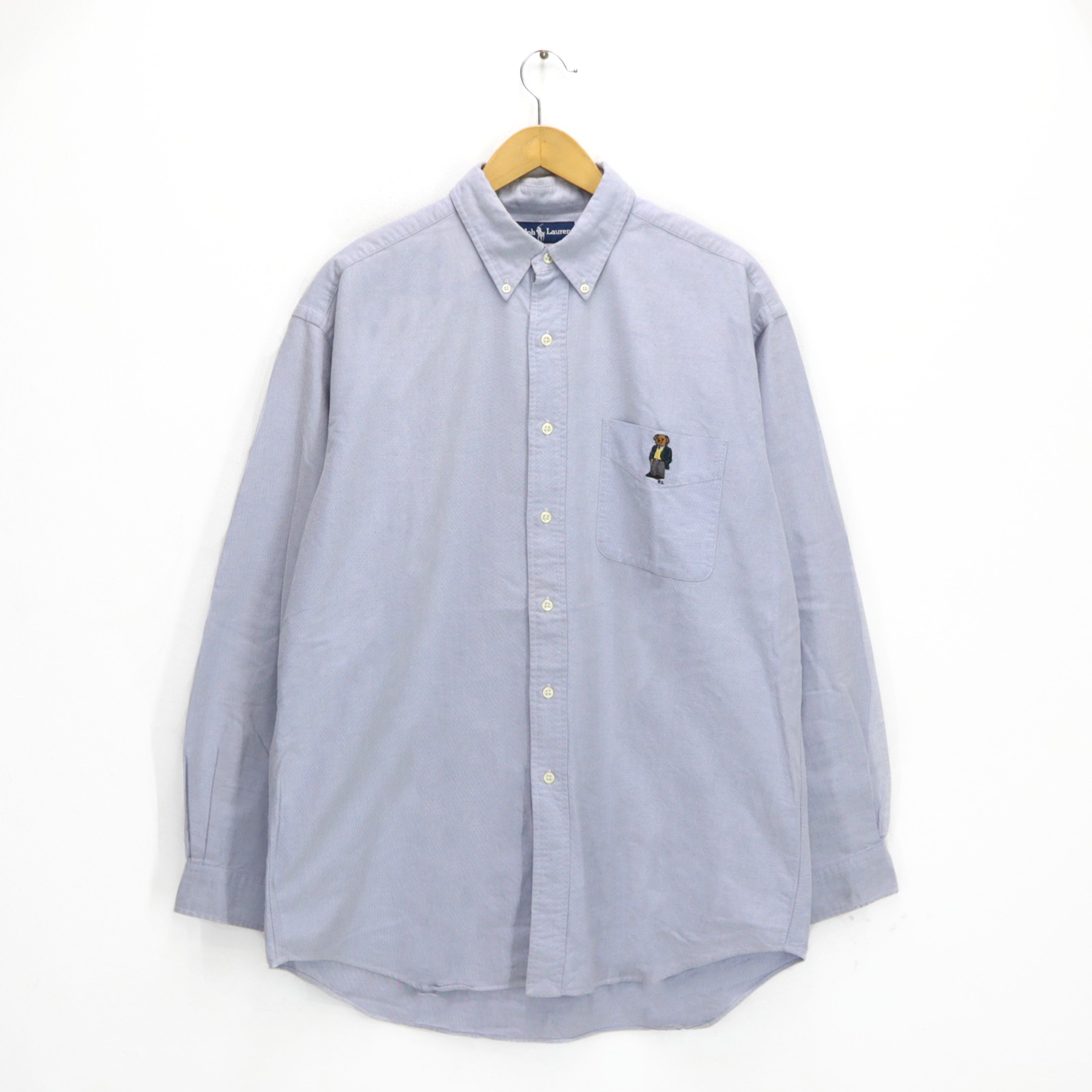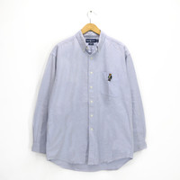 Vintage POLO BEAR by RALPH Lauren Blake Shirt Blue Oxford Button Down Mens Long Sleeve Polo Bear Mini logo Embroidered