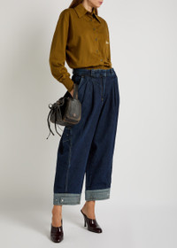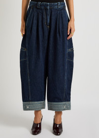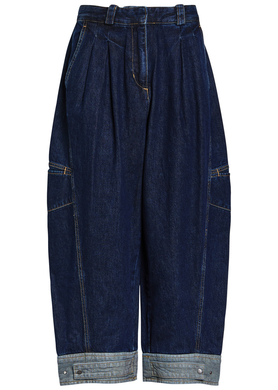 Info & Care 3.1 Phillip Lim denim jeans High-rise fit, wide barrel-leg cut, belt loops, four pockets, pleats at waist, slit pocket at sides, panelled back, adjustable press-stud fastening tab at cuffs, contrasting stitching, faded finish, cropped Concealed zip and hook fastenings at front 100% cotton Dry clean Size & Fit Front rise: 13 inches/ 33cm Inside leg length: 25 inches/ 63.5cm Wide barrel-leg cut Model is 5'9"/ 175cm and wears a size;US4
