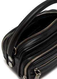Info & Care Acne Studios grained leather cross-body bag Top handle, detachable adjustable shoulder strap, designer-engraved key charm, two zip-fastening pockets at front, metallic designer stamp, zip-fastening back pocket, designer-engraved hardware, fully lined Zip fastening across top Size & Fit Width: 8 inches/ 20.5cm Height: 5 inches/ 12.5cm Depth: 4.5 inches/ 11cm Top handle drop: 3 inches/ 7.5cm Min. shoulder strap drop: 13.5 inches/ 34cm Max. shoulder strap drop: 21 inches/ 53.5cm