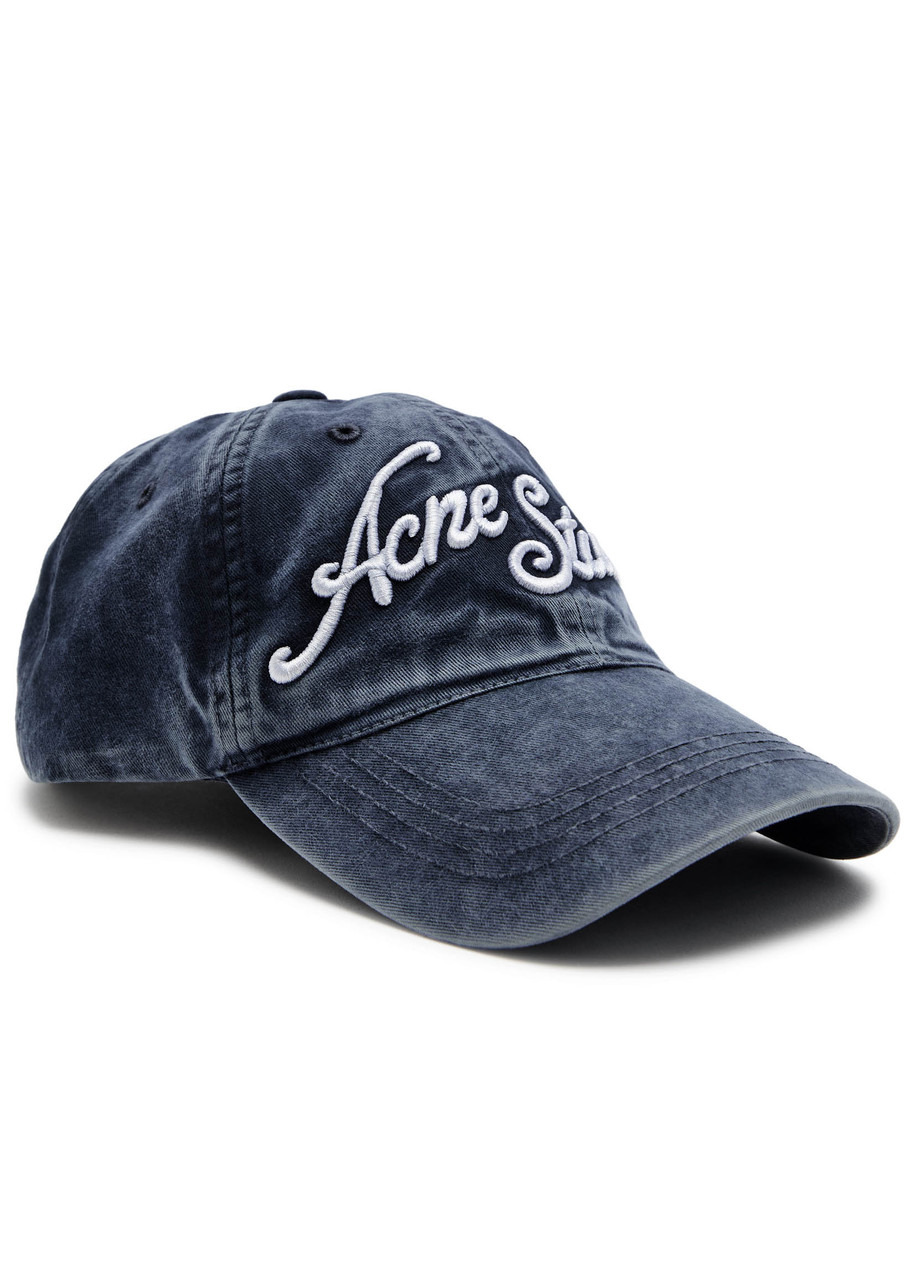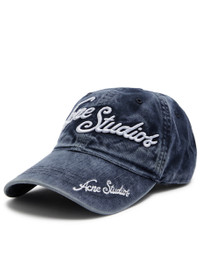 Info & Care Acne Studios cotton cap Logo embroidery at front and brim, embroidered eyelet details, concentric stitching at brim, washed and faded finish Adjustable fastening at back 100% cotton Dry clean Size & Fit Brim depth: 7.5cm