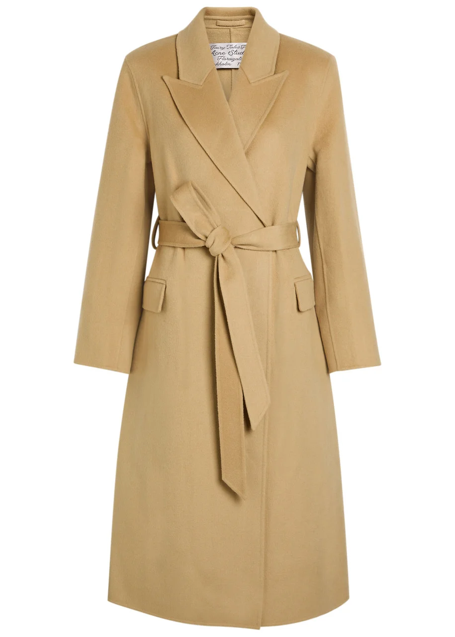 Info & Care Acne Studios wool-blend trench coat Peaked lapels, padded shoulders, belt loops, detachable waist tie, front flap pockets, back vent; Double-breasted button fastenings at front; 90% wool, 10% cashmere Dry clean; Size & Fit Length shoulder to hem: 48 inches/ 122cm Midweight Regular fit, use tie to cinch waist Straight cut Model is 5'9"/ 175cm and wears a size;FR36
