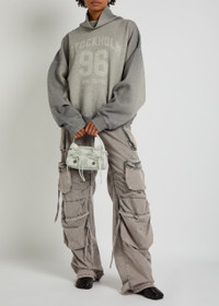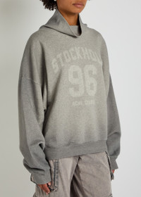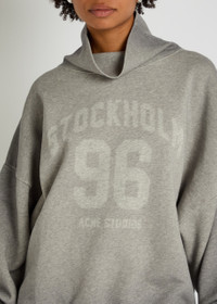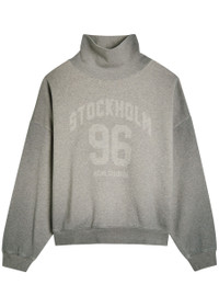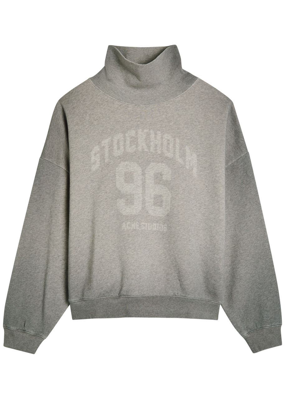 Info & Care Acne Studios cotton sweatshirt; Draped;high-neck, dropped shoulders, printed front, ribbed trims, faded finish Slips on 100% cotton Machine wash Size & Fit Length shoulder to hem: 25.5 inches/ 65cm Midweight Oversized style Relaxed, boxy fit Model is 5'9"/ 175cm and wears a size small