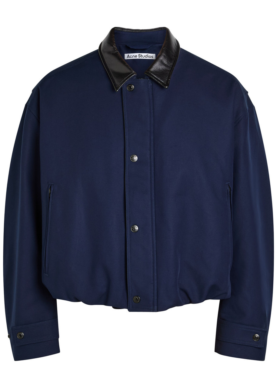 Info & Care Acne Studios twill jacket Padded, adjustable press-stud fastening cuffs, zip-fastening side pockets, logo-embossed applique at back neck, internal press-stud fastening pocket, internal tie-fastening hem, leather trims, fully lined Partially concealed zip and press-stud fastenings through front 100% cotton; lining: 65% polyester, 35% cotton; filling: 100% polyester Dry clean Size & Fit Length shoulder to hem: 24 inches/ 61cm Midweight Boxy fit Model is 6'1"/ 185cm, chest size 38.5 inches and wears a size;IT48